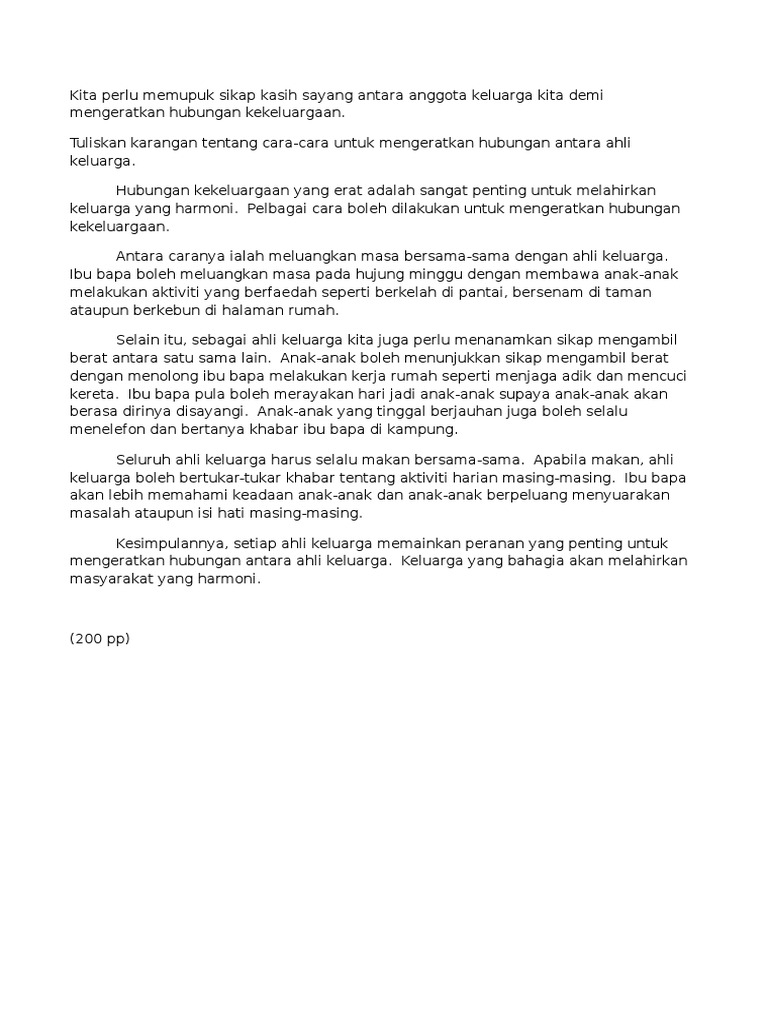 1 from Hari ini seperti yang kita sedia maklum, terdapat banyak kes perpecahan keluarga yang berlaku di negara kita. Institusi keluarga merupakan benteng pertahanan kita sama ada dari segi mental mahupun dari segi fizikal. Cara menggugurkan kandungan hamil dan mempercepat haid dengan cepat selesai dalam 24 jam secara alami dan mencegah kehamilan. Anak itu ibarat kain putih, ibu bapalah yang akan mencorakkannya. Karena keputusan ini sangat tidak mudah yang penuh resiko tinggi. C) menjalinkan hubungan kekeluargaan d) erat. Anda boleh merancang aktiviti yang lebih dekat dengan ahli keluarga. Ia mampu menghindari berlakunya masalah masalah yang terjadi di dalam keluarga dapat diselesaikan dengan cara yang baik tanpa memerlukan kekerasan dan dapat mengeratkan lagi hubungan tersebut.