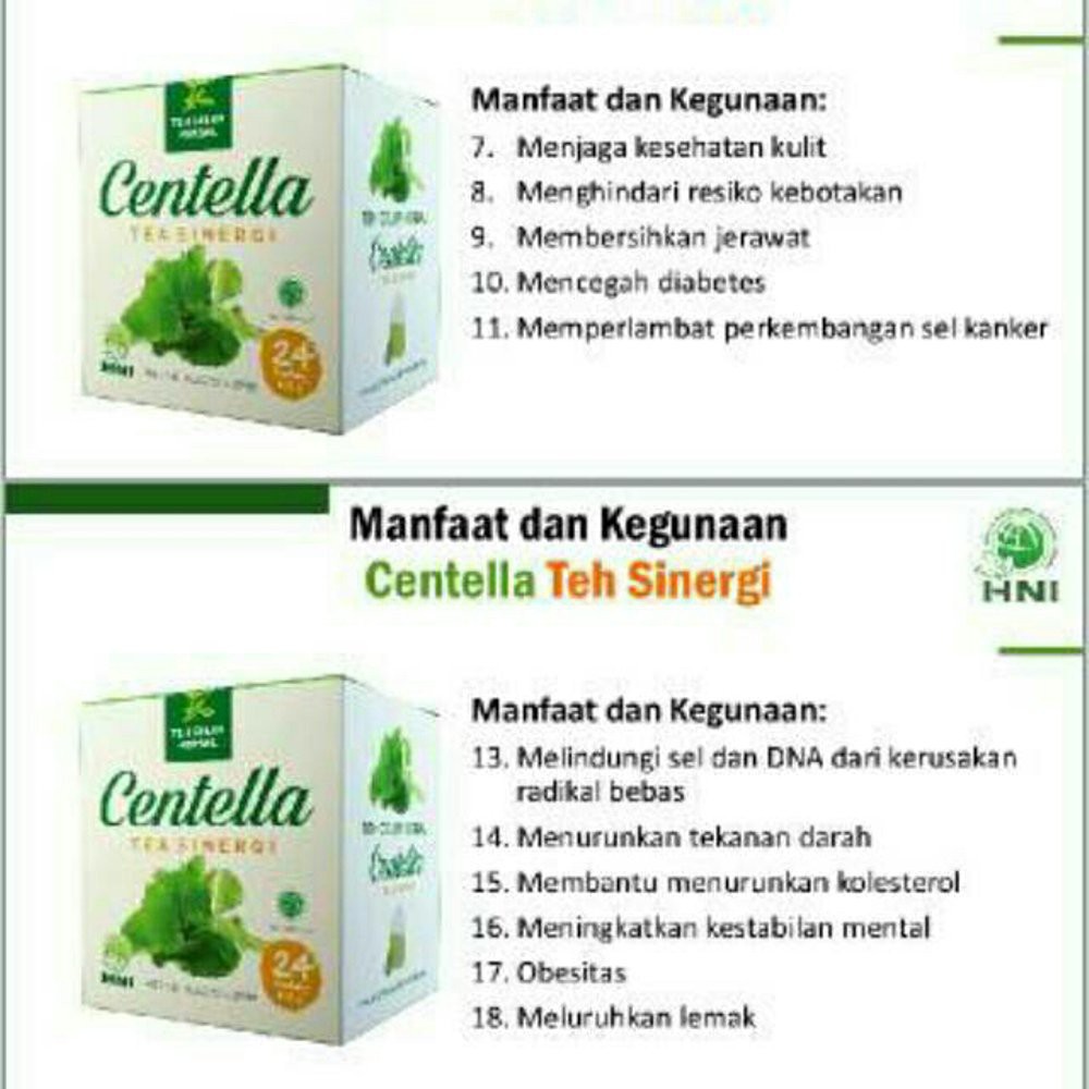 Komposisi centella teh sinergi hni dan khasiatnya :